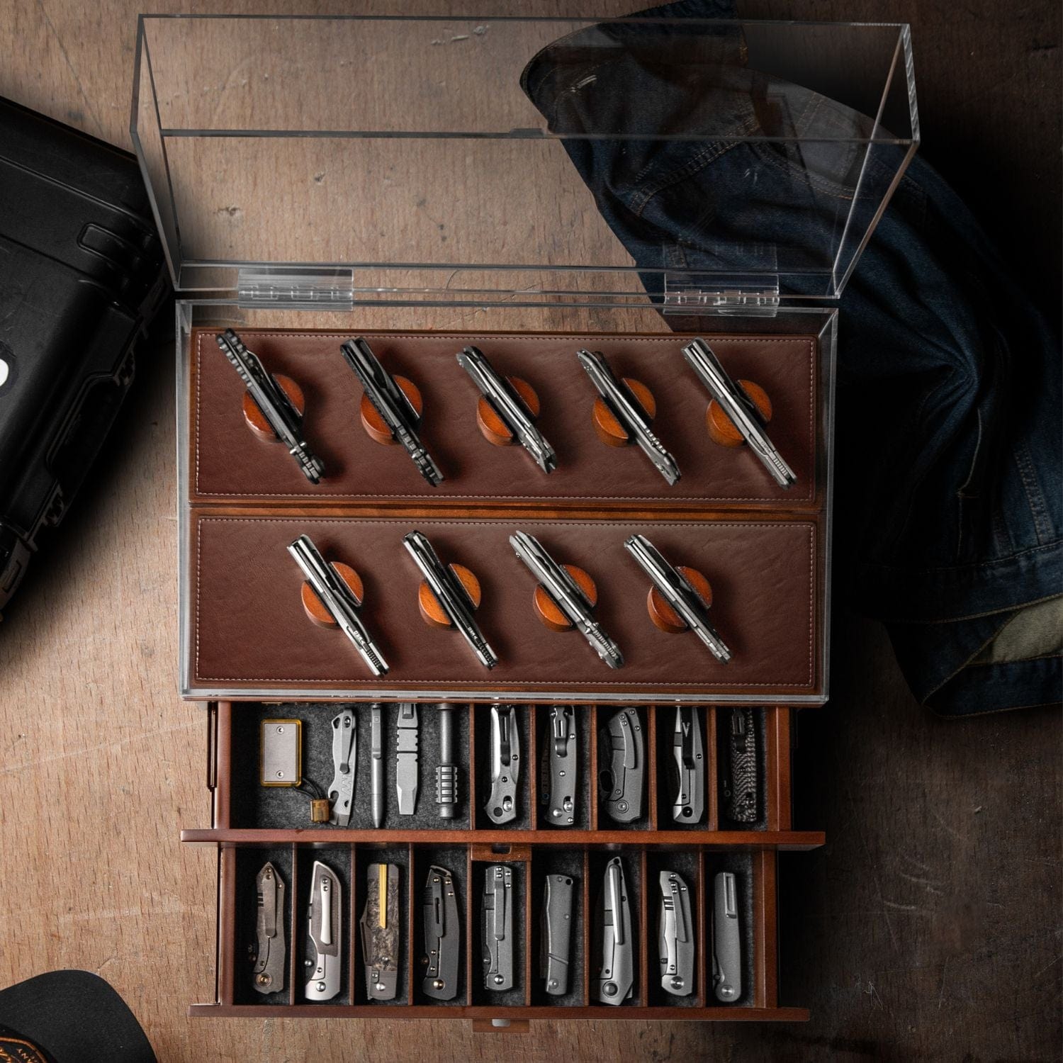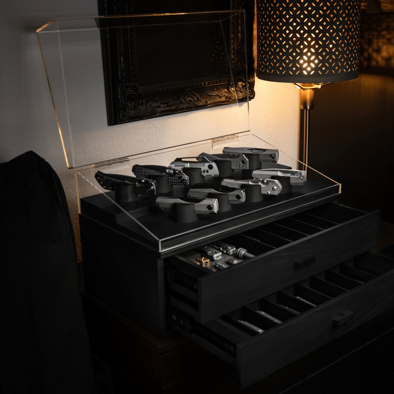 Knives in drawers get scratched, lost, or forgotten. Displaying them without protection leaves them exposed to dust and damage. The Armada Knife Case solves all these problems while giving your collection the attention it deserves.