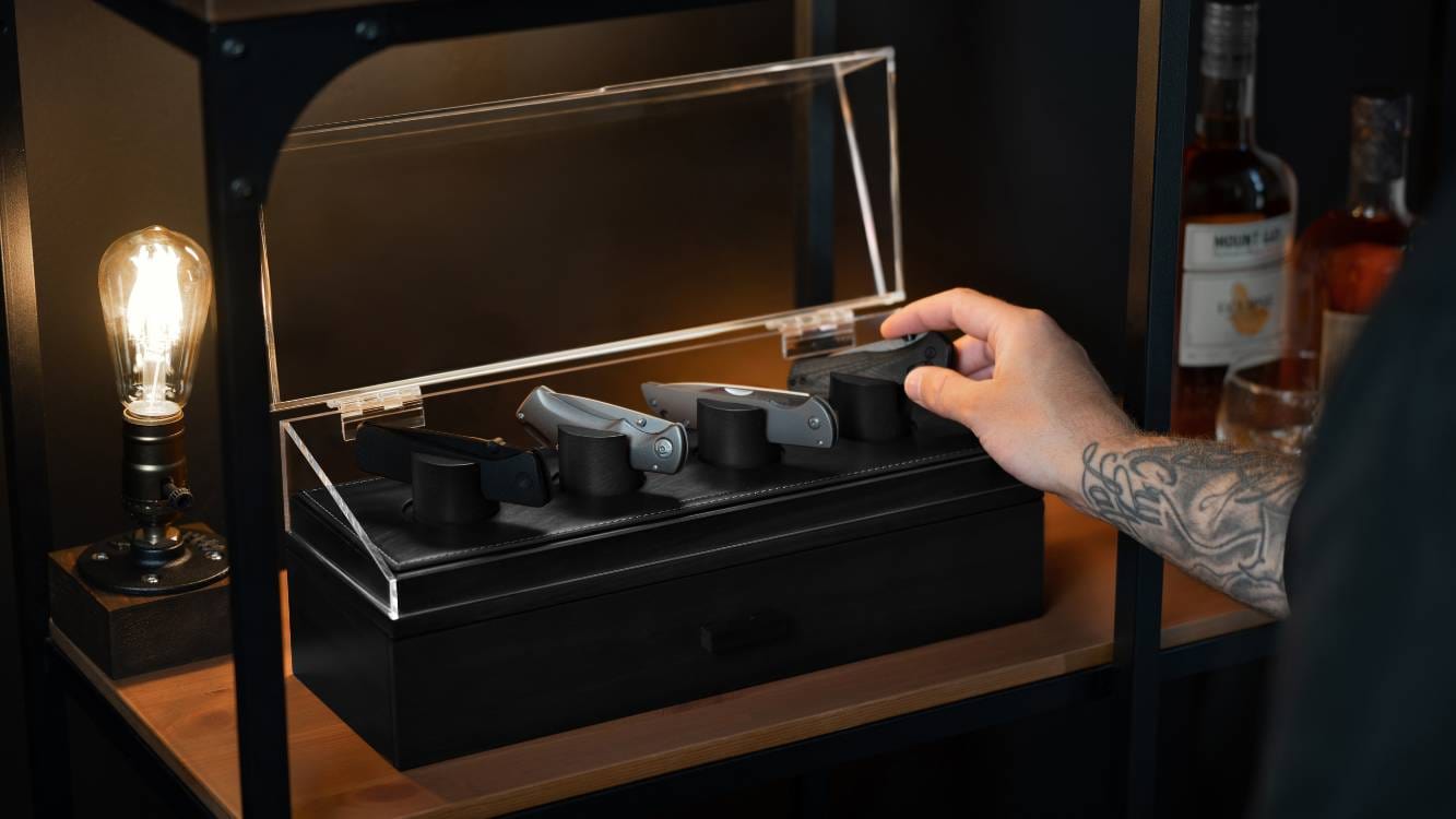 Your knives deserve a safe and stylish home. The Knife Deck Pro keeps them dust-free and scratch-free under its hinged acrylic cover, ensuring they stay in pristine condition.