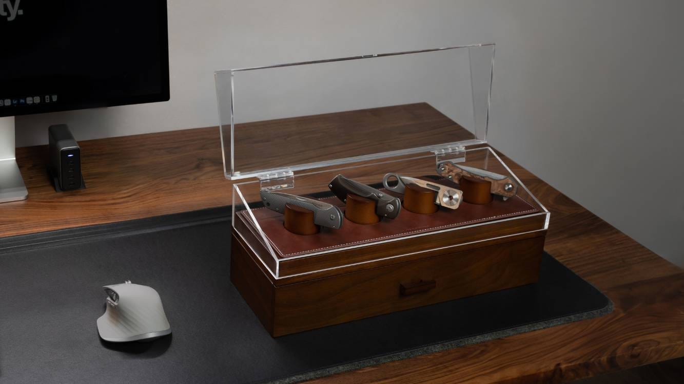 "Absolutely love this display case. Perfect size. The drawer is great as well for putting my wallet, Apple Watch bands, coins, air pods, and even two extra knives. Couldn’t be happier."